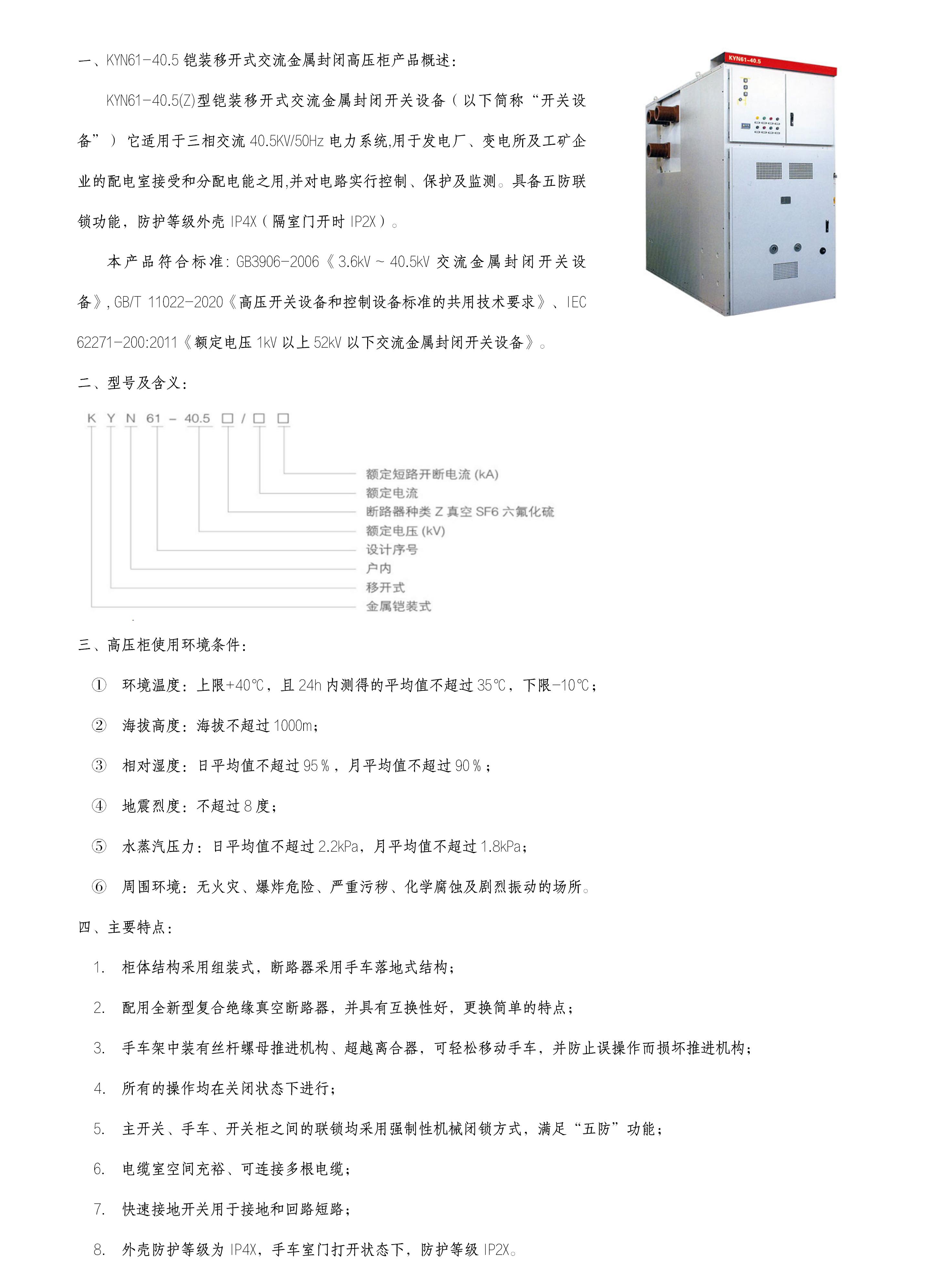 KYN61-40.5铠装移开式交流金属封闭高压柜